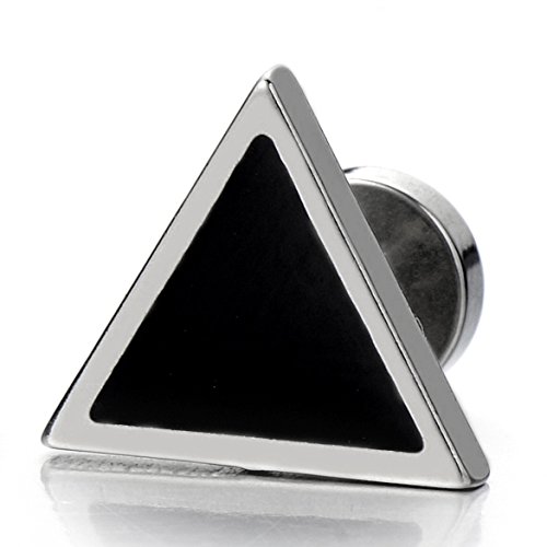 Unisex Nero Triangolo Orecchini da Uomo Donna, Finto Dilatatore Fake Plug, Acciaio Inossidabile, 1 Paio