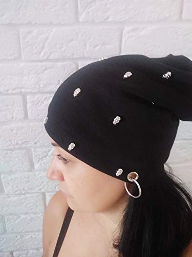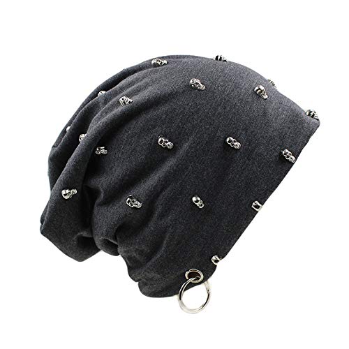 Materiale: il cappello punk con rivetto a perno è realizzato in cotone e spandex di alta qualità, estremamente confortevole, morbido, caldo e spesso. Con rivetto e o ring decorazione, stile punk rock, casual street fashion inverno caldo cappelli cappello per donne uomini