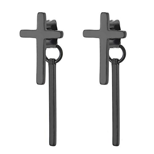 Unisex Uomo Donna Nero Croce Orecchini con Pendenti Lunga Cuboid Bastone, Croce Orecchini a Lobo, Acciaio, Unico