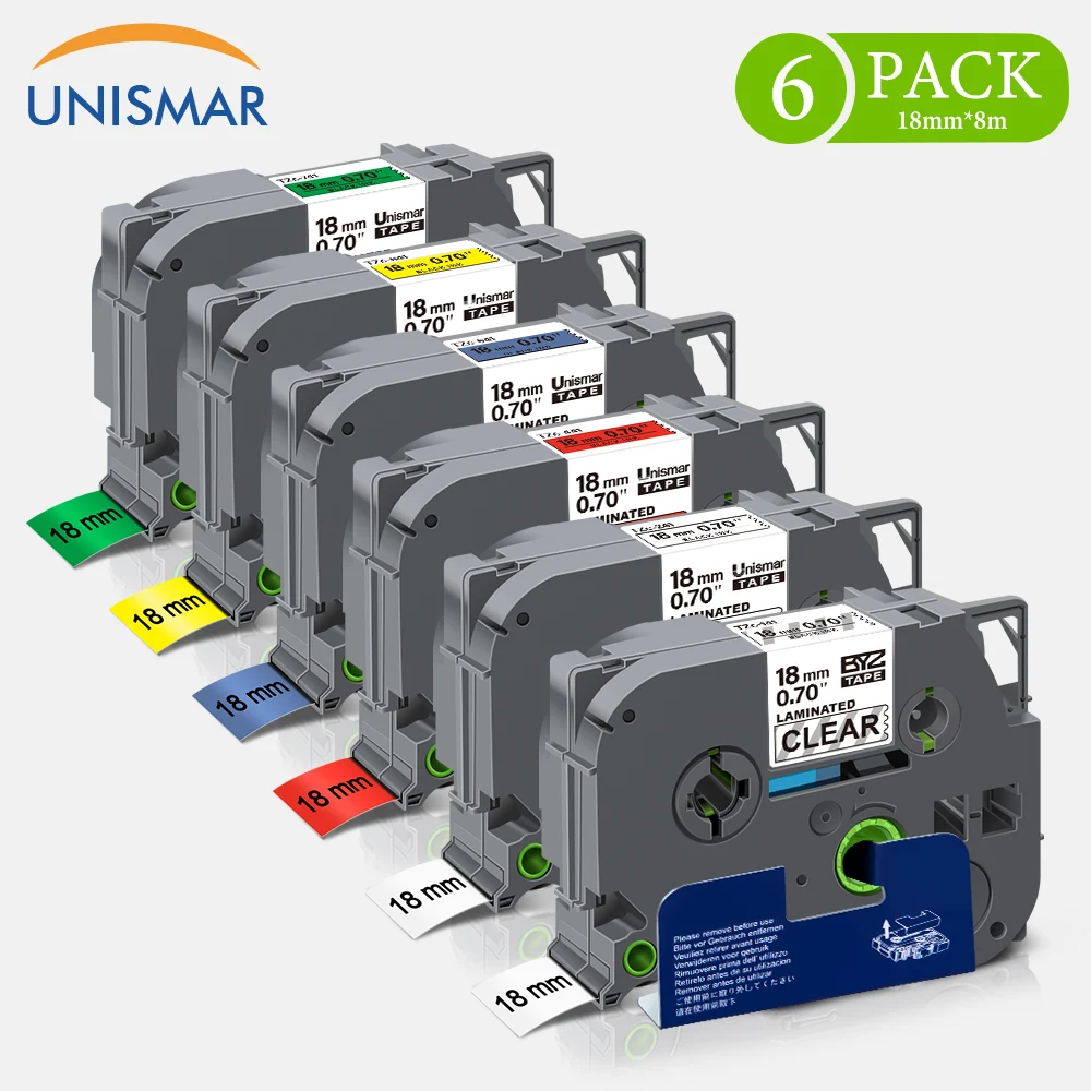 Unismar 6PK 18mm Label Tape for TZe-141 TZe-241 TZe-441 TZe-541 TZe-641 TZe-741 Ribbon Compatible for Brother P-touch LabelMaker