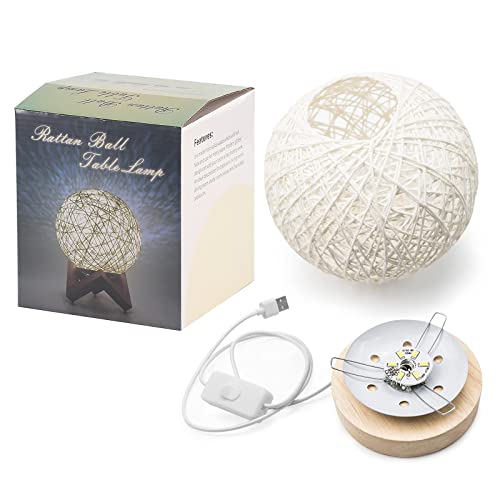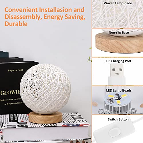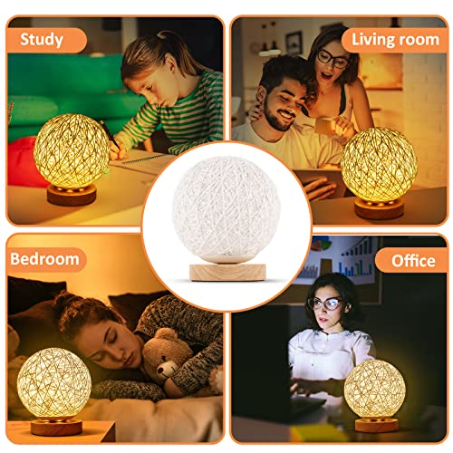 UNISOPH Lampada da Tavolo in Legno, Lampada da Tavolo USB con Paralume a Sfera in Rattan Lavorato a Mano Lampada da Luna in Legno per Camera da Letto Decorativa da Comodino (Bianco)