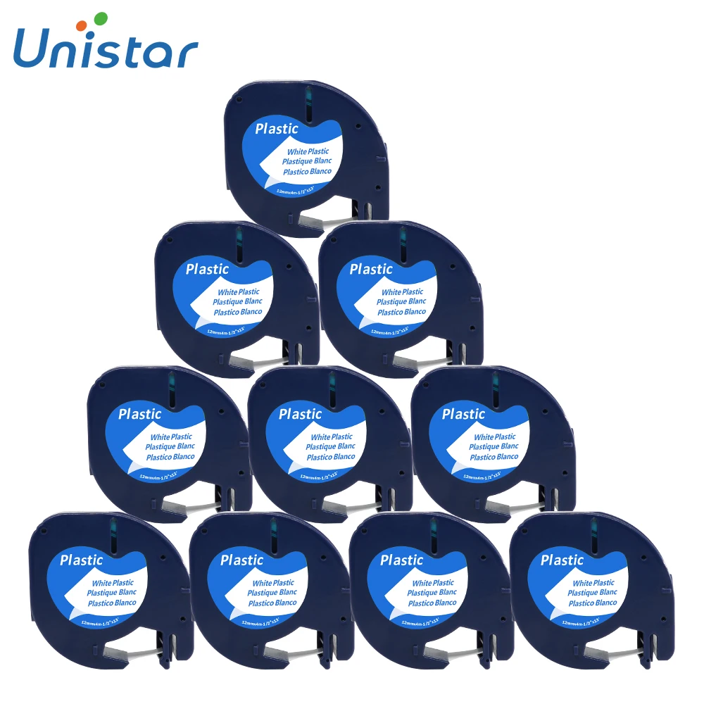 Unistar 10Pack 91201 Black on White (12mm x 4m) LT-Plastic Label Tapes Compatible Dymo LetraTag 91331 91221 59422 S0721660