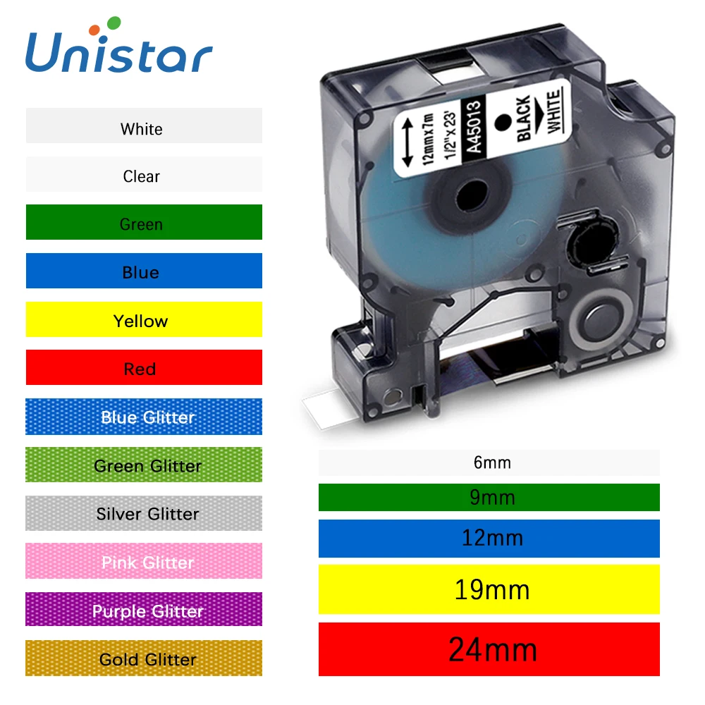 Unistar 45013 Label Tape Compatible for Dymo 12mm 45013 45010 45018 45023 Label Printer for LabelManager 210 280 300 450
