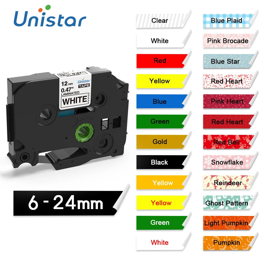 Unistar 231 Tape 12mm Compatible for Label Printer Ribbons 231 221 251 Label Maker Printer