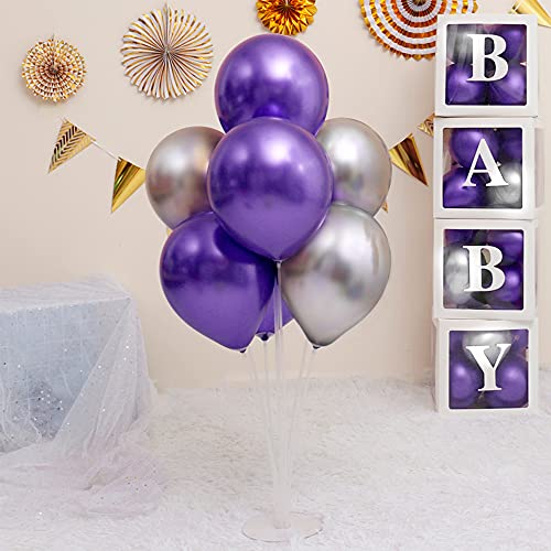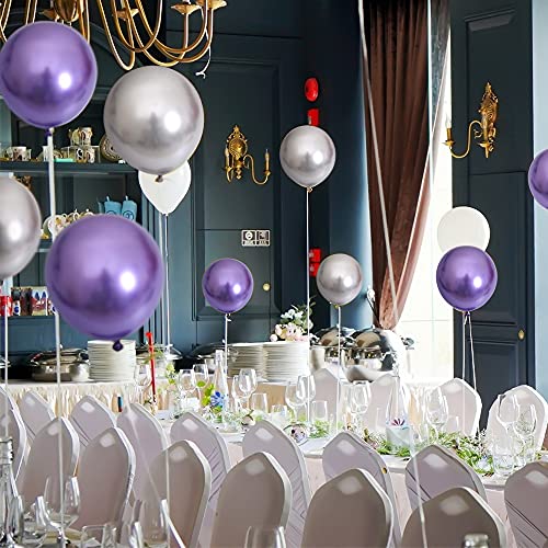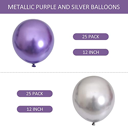 Unisun Palloncini metallizzati, 50 palloncini metallici colore viola lucido, argento cromato, palloncini in lattice addensati per fidanzamento, baby shower, decorazioni per feste di compleanno