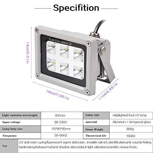 UniTak3D 405nm 6W Stampante 3d Lampada Polimerizzante in Resina UV,60W di Effetto di Uscita,per Stampante 3D SLA/DLP e Solidificare Resina Fotosensibile