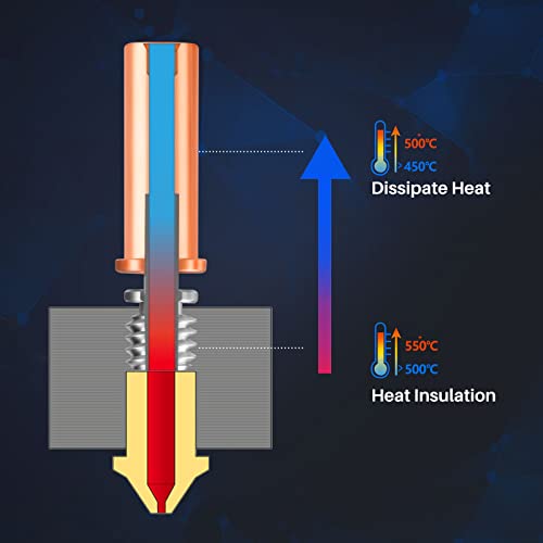 【Design Bimetallico】: questo heatbreak interamente in metallo è realizzato in lega di titanio e rame placcato in oro. La lega di titanio viene utilizzata per ridurre la conduzione del calore verso l'alto dal blocco riscaldante e il rame placcato in oro viene utilizzato per accelerare la conduzione del calore.