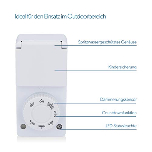 UNITEC Timer con funzione conto alla rovescia per esterni IP 44, analogico, sicurezza bambini, funzione crepuscolare, bianco