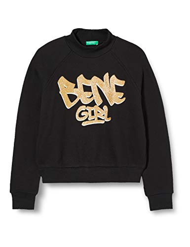 United Colors of Benetton 3F0EC2210 Felpa con Cappuccio, Nero 100, XS Bambina