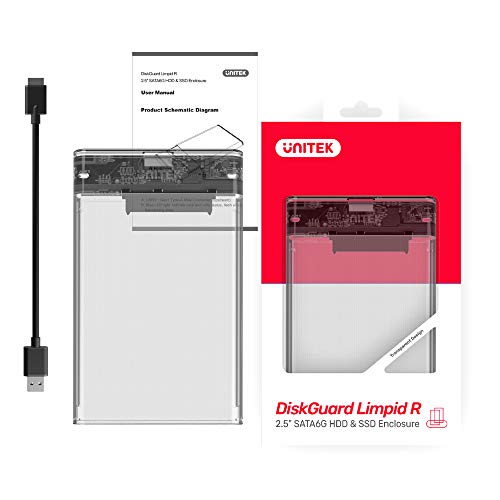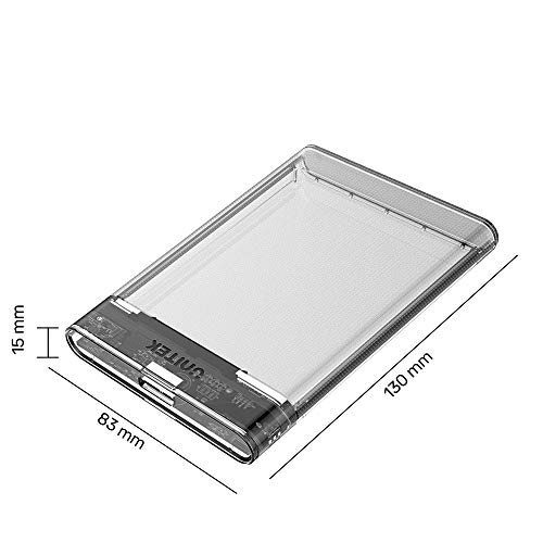 UNITEK Alloggiamento per disco rigido esterno da 2,5" HDD/SSD SATA I/II/III, con cavo 3.0 integrato, montaggio senza attrezzi, trasparente