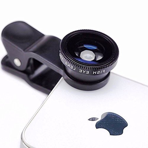 Universal 3-in-1 lenti Set (macro/grandangolare/pesce occhio) con Soft-clip per fotocamera, Smartphone, iPhone, Samsung, Android, con funzioni di cellulare