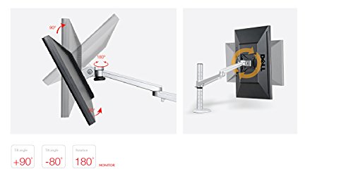 400mm di regolazione in altezza è disponibile sul palo di diametro 35mm in dotazione, mentre la configurazione a doppio braccio consente di raggiungere una portata fino a 420mm con una distanza minima di 70mm dal palo in posizione piegata. Il design permette anche 90/80 di inclinazione e 360 di movimento girevole per il supporto del monitor, oltre alla rotazione orizzontale a verticale.