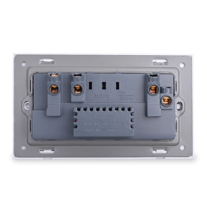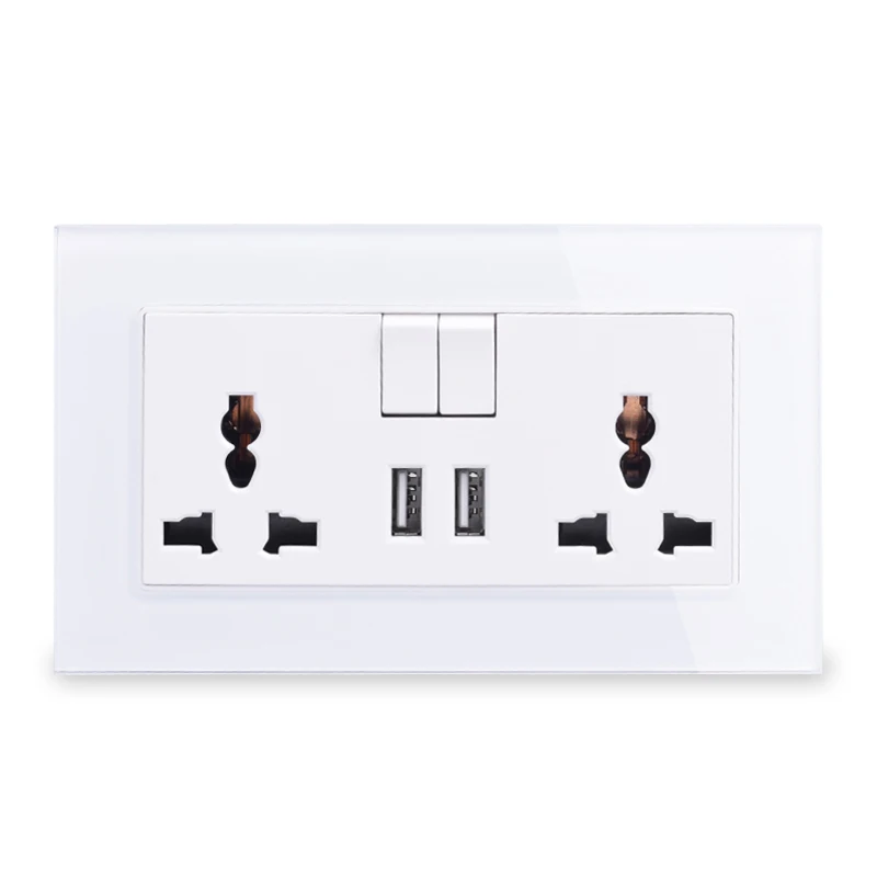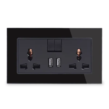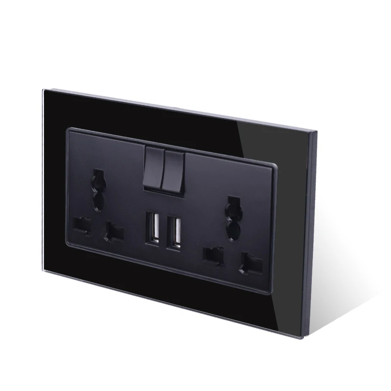 13A Universal Switched Socket 2 USB Charge Port For Mobile Output 2.1A Wall Outlet Crystal Glass Panel Knight Black
