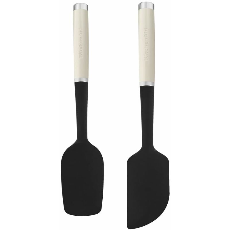 Questo set di utensili per planetaria a 2 pezzi KitchenAid Universal comprende una spatola a cucchiaio in silicone e una spatola raschiante in silicone. La spatola a cucchiaio è ottime per soffriggere, aggiungere ingredienti e versare. La spatola raschiatrice è ottima per raschiare la pastella dalle ciotole, spalmare la glassa e altro ancora. Le teste in silicone sono resistenti al calore fino a 260°C/500°F e possono essere utilizzate su tutte le pentole, comprese quelle antiaderenti. I manici in ABS lucido sono caratterizzati da un logo in rilievo, così come le bussole e le estremità in ABS opaco. Sono lavabili in lavastoviglie per una facile pulizia.