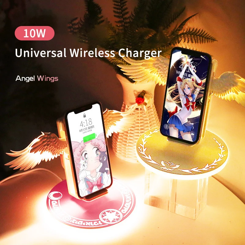 Qi 10W Universal Wireless Charger Colorful LED Angel Wings for iPhone Pro X XR 8 Plus Huawei Samsung Phone Girls Birthday Gift