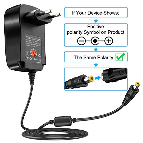 ✔️ 【Ingresso adattatore universale da 30 W】 CA universale 100 ~ 240 V 0,25 A 50/60 Hz, uscita adattatore multitensione CA universale: 3 V / 4,5 V / 5 V / 6 V / 7,5 V / 9 V / 12 V - MAX 2000 mA. L'alimentatore sostitutivo CA Rocketek offre una gamma di tensioni, punte sostituibili. ⚠️ PROTEZIONE COMPLETA da sovratensione / sovracorrente / cortocircuito / sovratemperatura.