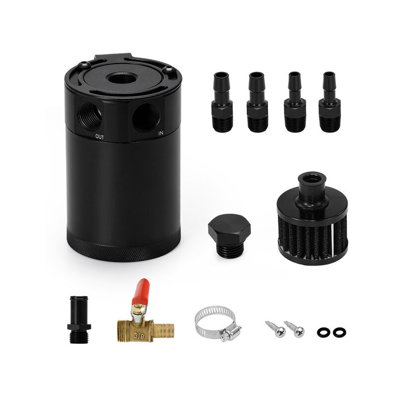47448 WLR-Universale Alluminio Billet Sconcertato Oil Catch Can Serbatoio con Filtro Sfiato Motore MiniSeparatore olio WLR-TK92 Applicazione: Universale Caratteristiche e Vantaggi: Cattura olio Può di Sfiato del Serbatoio Nero di Sfiato filtro staffa di montaggio regolabile Rubinetto Scolapiatti lato sinistro porta di ingresso lato Destro porta presa Incluso tubo sbavature: 11 millimetri e 14.22mm spina di adattatore è incluso se il filtro sfiato non è necessario. In Alluminio Billet Universale Oil Catch Can Serbatoio con Filtro Sfiato 200 ML costruire con filtro in acciaio inox all'interno per una migliore le prestazioni.Il migliore cattura può e perfetto per i piccoli spazi questo cattura oil can è costruito con acciaio filtro all'interno di questo olio di cattura può volere raccogliere olio e umidità colpo dai gas che da valvola PCV o COPERCHIO DELLA VALVOLA del motore porte di andare per sistema di aspirazione che provoca carbonio e morchie nel sistema di aspirazione e il
