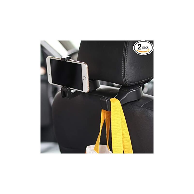 Carico gancio: Il carico massimo del gancio è di 44 libbre/ogni gancio. Funzione staffa: supporta telefoni cellulari entro 6 pollici di larghezza I ganci per poggiatesta per auto sono perfetti per appendere generi alimentari, vestiti, ombrelli, borse, bottiglie d'acqua, giocattoli per bambini, articoli per bambini e altro ancora. Capovolgi delicatamente, aggancia il supporto del telefono e goditi il tuo teatro unico Sono inclusi 2 ganci per i tuoi molteplici scopi. Il gancio può essere ruotato orizzontalmente di 360 gradi dopo l'installazione. I ganci possono essere nascosti quando non in uso, risparmiando spazio e perfettamente compatibili con la tua auto. Organizza il disordine del sedile posteriore e apre lo spazio di sedile, pavimento e gambe, ganci oscillanti sulla parte anteriore o posteriore del sedile per utilizzare secondo necessità Il gancio è dotato di un coperchio di blocco, che è più stabile e non si stacca.