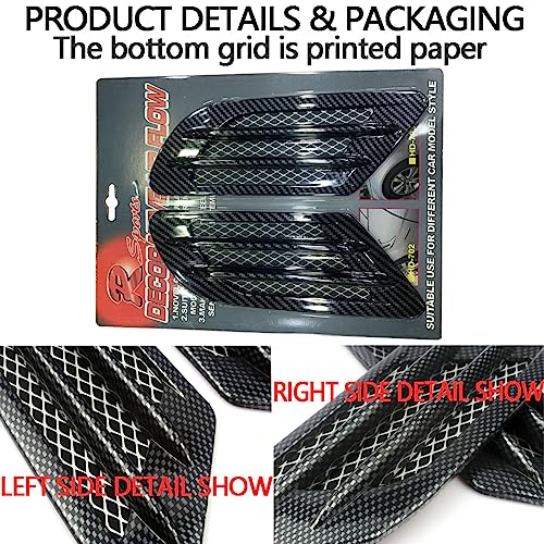 【Specificazione Dimensione】Dimensione: 22*8*1 CM (8.66*3.15*0.39 IN), modello in fibra di carbonio esterno per la vostra scelta, questa pasta di decorazione del parafango del flusso d'aria dello sfiato è adatta a tutte le auto, decorazione elegante e alla moda, in modo che la vostra auto sia più sportiva, più di fascia alta, più distintiva perfetta per auto, camion.