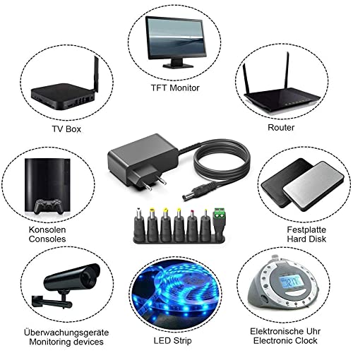 HKY 12V Universale Trasformatore Alimentatore Adattatore Caricabatteria per Strisce LED, Stampante, Scanner, Router, Fax, Lettore Dvd, Disco Rigido Esterno, Telecamera CCTV, Radio, Pompa dell'Acqua