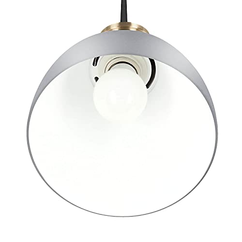 DESIGN MODERNO: la base dorata della lampada a sospensione dall'aspetto industriale crea un contrasto elegante ed elegante con il grigio opaco all'esterno del paralume metallico.