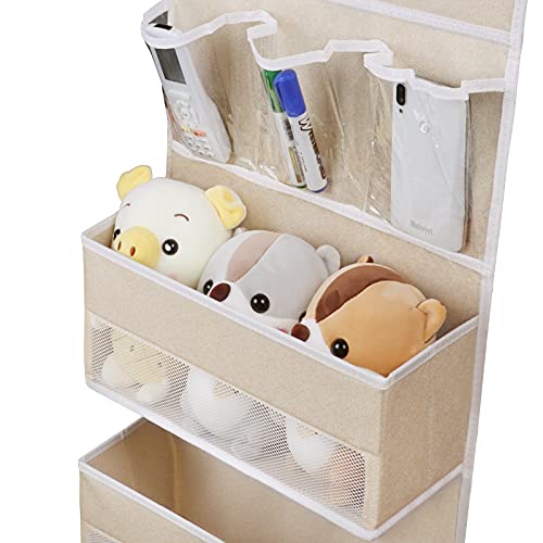 Univivi - Portaoggetti da appendere alla porta, dotato di due robusti ganci regolabili, porta del bambino, portaoggetti per la camera dei bambini, camera da letto, bagno, ecc. - beige