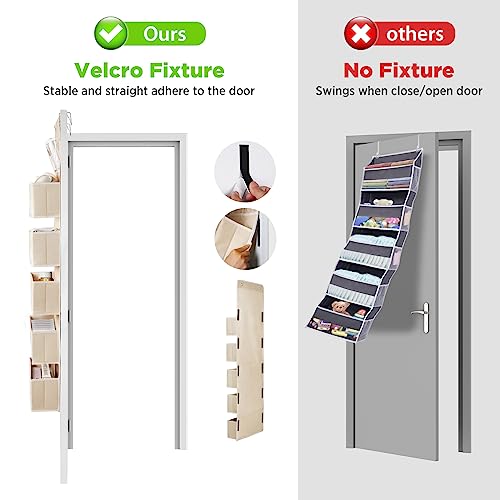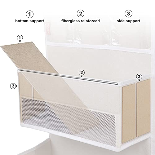 Struttura di alta qualità: 2 robusti ganci in metallo a forma di L. Rispetto alla maggior parte degli altri organizer per porte dell'armadio, il gancio elastico può appendere saldamente il ripiano dietro la porta e il grande spazio tra le tasche rende facile riporre e recuperare oggetti. (Suggerimenti: si prega di prestare attenzione alle dimensioni del gancio prima di acquistare il prodotto.)