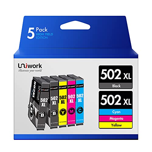 Uniwork 502XL Multipack Compatibili per Cartucce Epson 502 XL per Workforce WF-2860 WF-2865 WF-2860DWF Expression Home XP-5100 XP-5105 (Nero Ciano Magenta Giallo, 5-Pack)