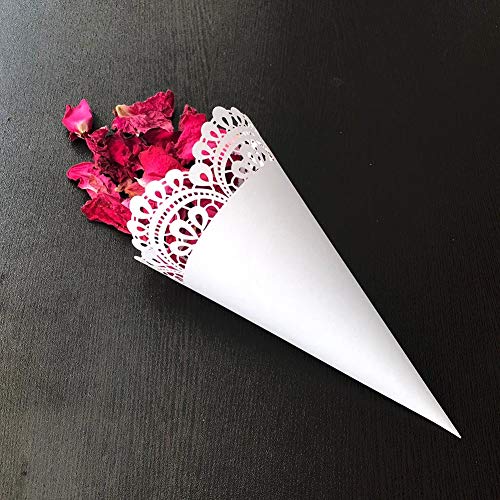 UNKC 50 PZ Coni Riso Matrimonio, Bianco Fiore Taglio Laser Coni Portariso, Coni Portaconfetti, Porta Riso per Confetti, confettata, Bomboniera Matrimonio Elegante per Segnaposto Comunione Nozze