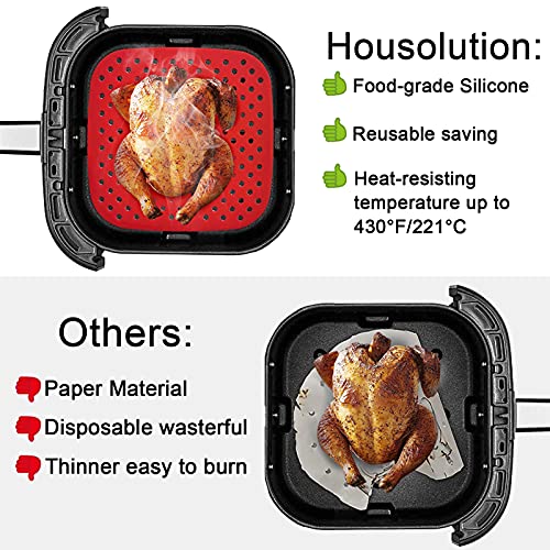 Unnosin riutilizzabili Air Friggitrice Liners 21,6 cm quadrati, tappetini per friggitrice ad aria antiaderente in silicone di alta qualità, grandi fori di circolazione dell'aria (rosso+nero, 2 pezzi)