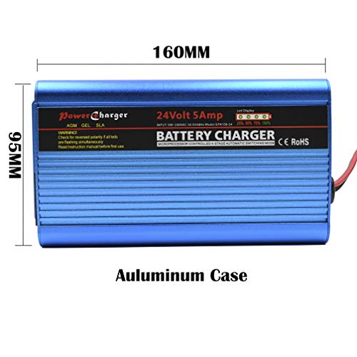✅【Carica rapida】: Il caricabatterie per batterie da 24V 5A è dotato di un cavo di prolunga AC ricaricabile e supporta un'input AC100-240V per l'uso in tutto il mondo con un ingresso di cavo AC C13 ricaricabile. Il caricatore intelligente automatico può caricare batterie con una capacità da 7-120Ah e fornisce una corrente costante per una carica più veloce, con un'amperaggio di uscita di 5A