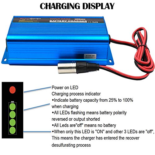 ✅【Sicuro e affidabile】: Il caricabatterie da 24V è progettato e fabbricato in conformità agli standard di sicurezza UL/CE/CCC e alle normative per la manutenzione dei caricabatterie a impulsi. Il programma di ricarica intelligente a quattro fasi (inizializzazione, carica in massa, modalità di fluttuazione) è guidato dall'ultimo MCU, che può ottimizzare la potenza della batteria e ha un consumo di energia in standby ultra-basso.