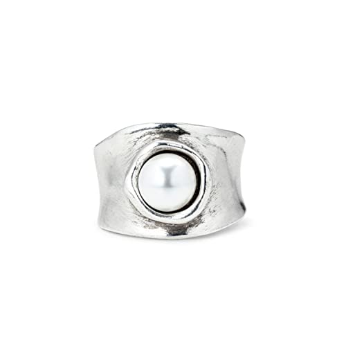 Ipnotico anello bagnato nell'argento e ornato da cristallo perlato di SWAROVSKI ELEMENTS al centro, che ricrea il vero talismano della buona fortuna.