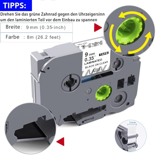 ✔ La parte posteriore del nastro p-touch tze da 9 mm è divisa, il che lo rende facile da rimuovere. Il nastro per etichette da 9 mm è resistente all'acqua, agli agenti chimici, allo sbiadimento, alla temperatura, poiché è laminato.