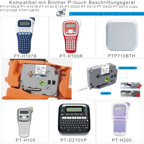 Compatibile con etichettatrice Brother p-touch PT-H100LB, PT-1000, PT-1005, PT-1010, PT-1080, PT-1090, PT-1230PC, PT-1260, PT-1280, PT-1290, PT-PT-1830 PT-H101D, PT-H105, PT-P750W. PT-P700 . Per ulteriori modelli di stampante, vedere la descrizione sottostante.