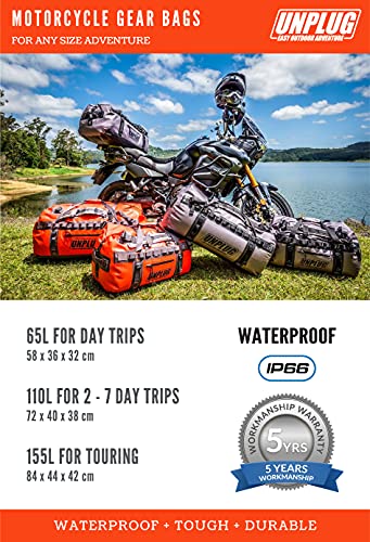 UNPLUG Borsone viaggio - Borsa impermeabile 1680D per canottaggio, motociclismo, caccia, campeggio, kayak o jet ski. Proteggi i tuoi oggetti in qualunque condizione (Grigio, 65L)