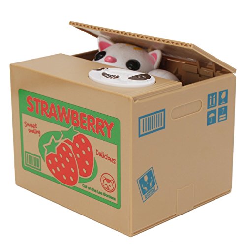 UNTIL YOU】 Carino rubare Monete centesimi Penny Cat Money Box Risparmio di Denaro Raccolta Regalo Piggy Bank Natale per i Regali di Natale per Bambini Bambini( Fragola Gatto )