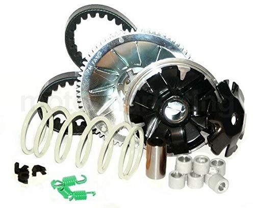 NUOVO RACING VARIATORE KIT ____ Il sportiva kit comprende tutti gli elementi della immagini principale, tra le altre cose: variatore semipuleggia mobile, ____ disco contenitore rulli, rulli, tassellini traino, mozzo, semipuleggia / ventola motrice, ____ boccola messa, molla di contrasto, molle frizione, cinghia trasmissione. ____