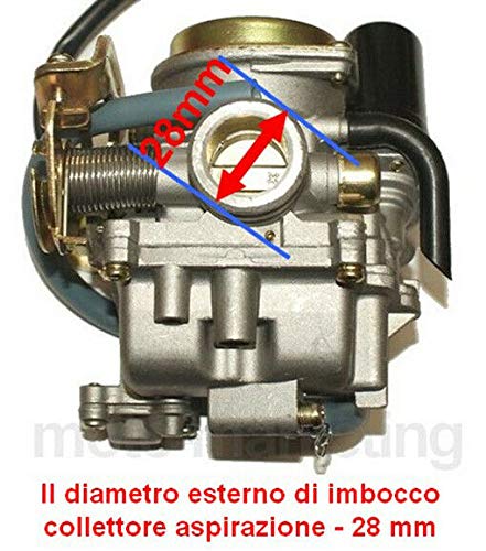 NUOVO RACING ____ CARBURATORE con dispositivo avv. AUTOMATICO ____ Il carburatore tipo racing con il diametro di diffusore aumentato ____ Getto - 72 ! ____ Il diametro esterno di imbocco collettore aspirazione - 28 mm ____ Il diametro esterno di ingresso filtro d'aria - 38 mm ____ Il diffusore di diametro allargato permette di ottenere prestazioni migliori del motore, ____ così l'accelerazione e la velocità massima del veicolo si possono aumentare. ____ Aumenta anche le prestazioni del cilindro