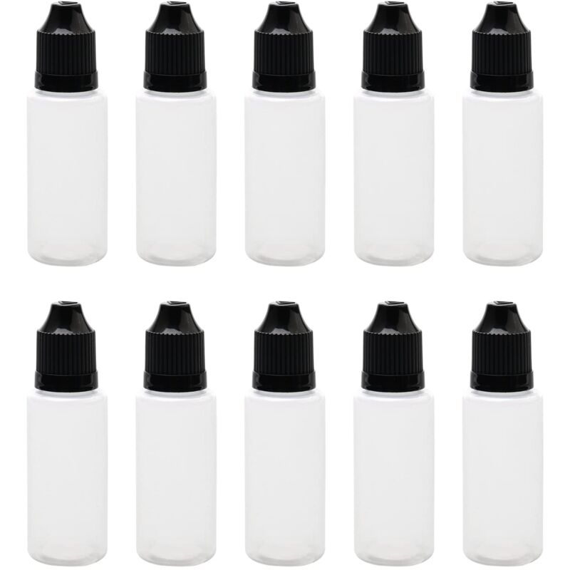 Descrizione Specifiche: Prodotto di alta qualità. Può essere utilizzato per erogare e conservare la maggior parte dei liquidi. Ideale per solventi, oli leggeri, vernici, essenze, collirio, soluzione salina, ecc. Velocità gocciolante: il contagocce può essere gocciolamento liquido ben controllato Capacità: 20 ml. Quantità: 10 pezzi. Materiale: PET/LDPE Colore della cuffia: nero. Cappuccio: tappo a prova di bambino Colore della bottiglia: traslucido Contenuto della confezione: 10 bottiglie vuote contagocce