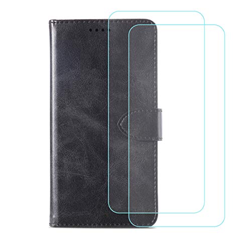 UOJCKJSZ PU Cover per TCL 305 + [2 Pezzi] Vetro Temperato, HD Screen Protector Film Schermo - Pieghevole Custodia in Pelle Borsa Slot per schede Copertura Protettiva - Nero