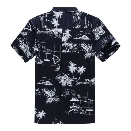 Uomini Aloha Shirt Camicia hawaiana Blu Scuro Mappa Surfer 2XL