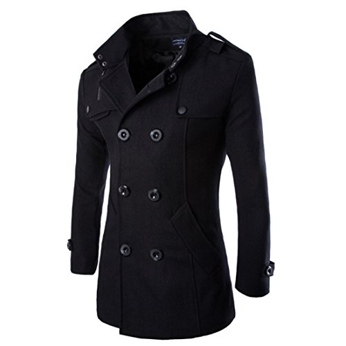 Uomini Autunno Inverno doppia fila tasto di collare di lana del cappotto (Nero, EU M(Tag L))