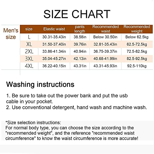 Sicuri e convenienti: i pantaloni riscaldati da uomo sono progettati con isolamento di sicurezza, modulo di protezione termica incorporato, tensione di sicurezza di 5v, una volta surriscaldato, smetterà di funzionare finché il calore non tornerà alla temperatura standard.