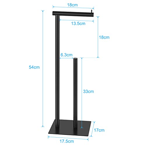UOMIO Portarotolo da Terra, Piantana Portarotolo con Portarotolo di Ricambio, Non Richiede Fori nel Muro, 54cm di Altezza Porta Carta Igienica da Terra in Metallo Base, Nero
