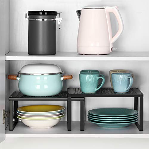 UOMIO Set di 2 Scaffali Inserti da Cucina Portaspezie in Metallo Portaoggetti da Cucina Impilabile Portapiatti Organizer per Cucina - Nero