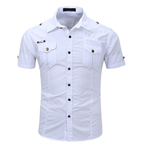 Uomo Abbassare il Collare Single Breasted Manica Corta Camicia Casual (XXXL, bianca)