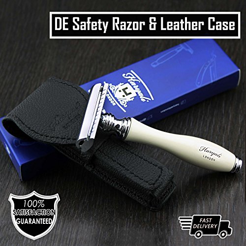 Da uomo da barba classico de lame per rasoio di sicurezza in colore avorio e vera pelle protettiva custodia (non incluse) | da uomo Shaving & Grooming > da uomo Essentials - regalo per lui