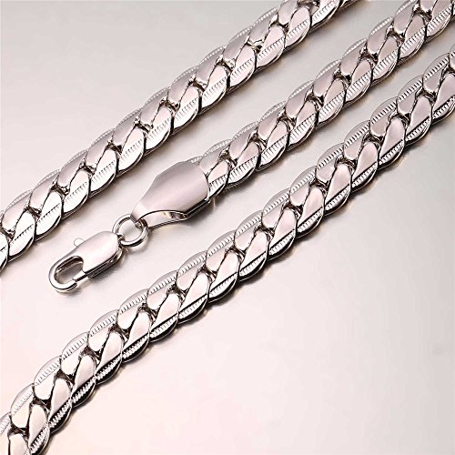 U7 Uomo Collana a Catena Inglese 9 mm Grandi Gioielli in Oro Bianco Placcato da Ragazzo con Scatola di Marca Rapper - 66 cm Lunghezza/Argento