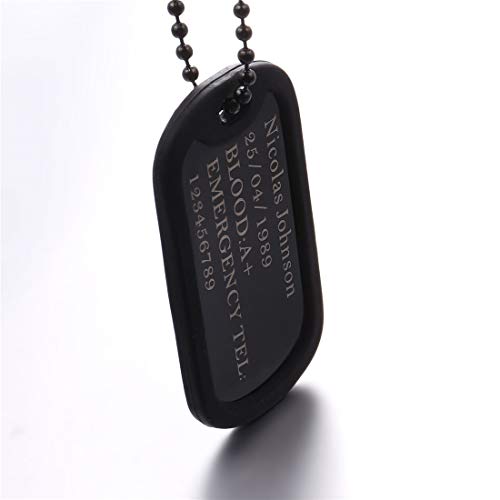 U7 Uomo Collana Personalizzata Pendente Militare Dog Tag, Cindolo + Catena 60 cm per Ragazzo, Acciaio Inossidabile, Regalo Compleanno, con Confezione, Nero
